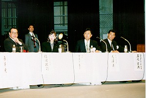 駒沢サミット うれしさが背中に漂っている 石毛さん登場 中畑 おまえはエスコートせん ここまではまじめ 石毛 先輩たのみますよ... と言ったか言わないかはご想像にまがせます! でも舞台で踊ってた訳ではありません 藤井 暁 司会 駒沢サミットはじまる テレビ朝日アナウンサー お疲れれさまでした ←記念講堂の風景に戻る 営友会総会へつづく→
